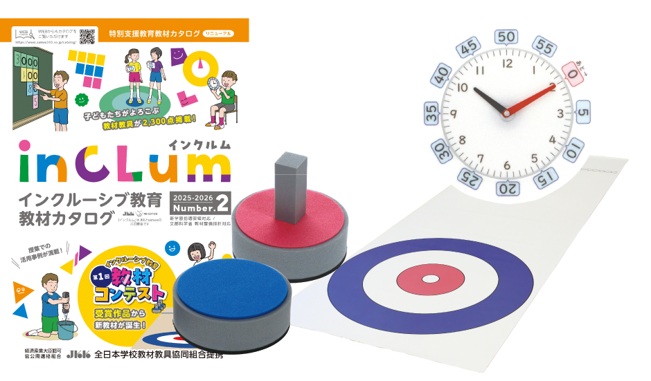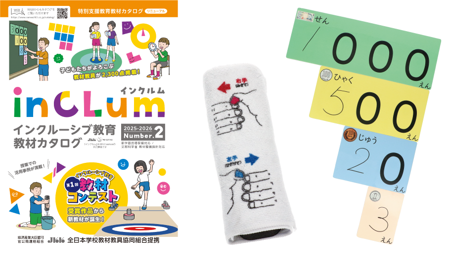 第1回インクルーシブ教育 教材コンテストの受賞作品も製品化され掲載されているインクルーシブ教育教材カタログ「inCLum」より1万円分の教材をお選びいただけます。